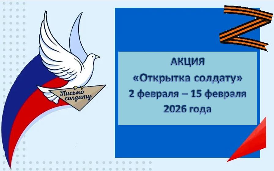 Друзья! Со 2 по 15 февраля Детская модельная библиотека запускает важную акцию «Открытка солдату». Давайте сделаем открытки, напишем теплые и добрые письма нашим солдатам, которые сейчас выполняют ответственную миссию вдали от дома. Поделитесь в письмах своей радостью, расскажите о школьных успехах, любимых книгах и мечтах.Пусть ваши строки станут лучиком света и тепла для тех, кто нас защищает. Вместе мы можем поддержать каждого защитника нашей Великой страны. Написанное вами слово имеет силу, оно дарит надежду и веру в победу добра над злом. Все ваши письма и открытки будут отправлены нашим бойцам. Вместе сделаем этот мир чуточку теплее и светлее!