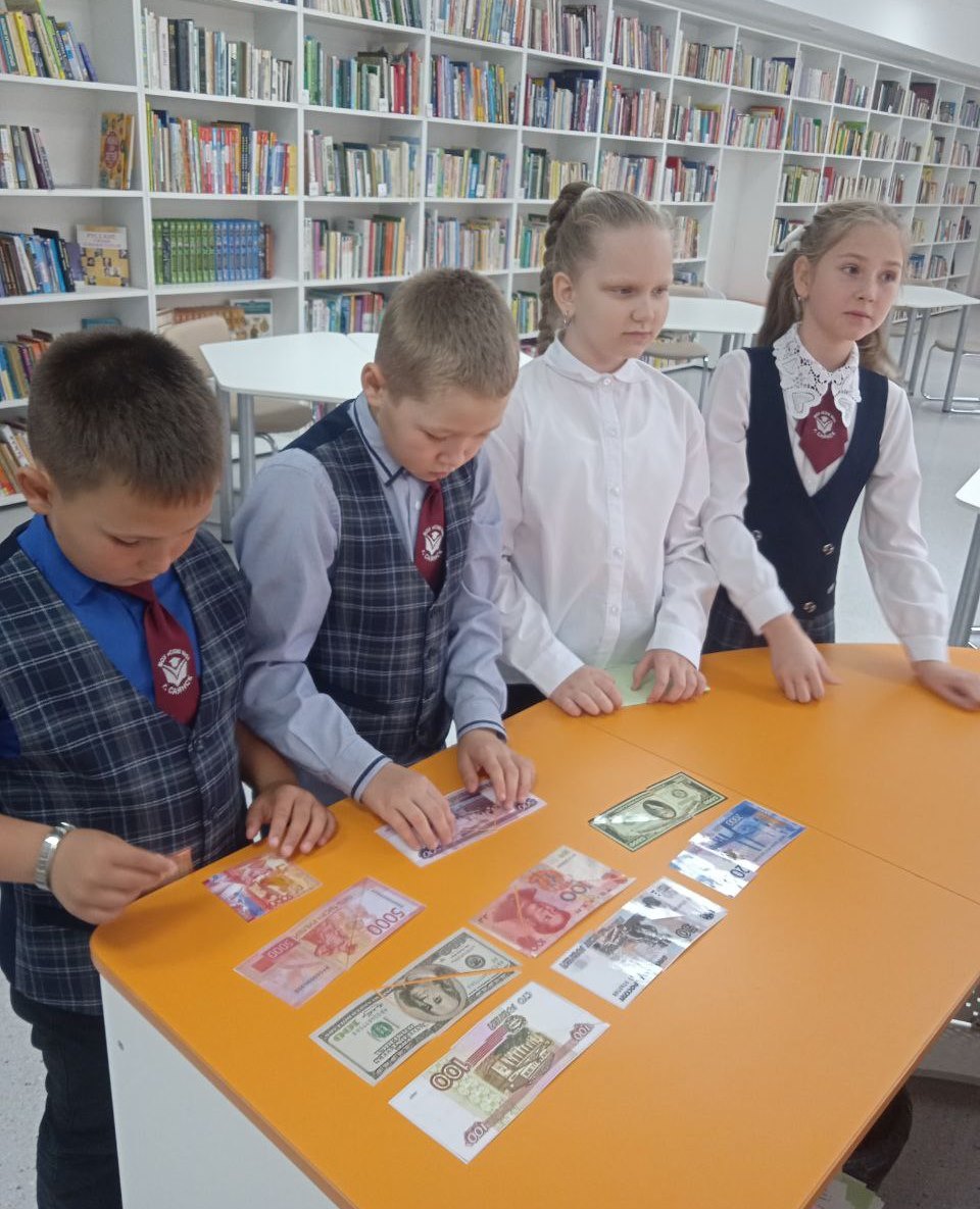 Финансовая грамотность воспитывается по мере взросления и прохождения детьми различных жизненных этапов: первого самостоятельного похода в магазин, оплаты проезда, получения карманных денег и т.д. Однако, достаточно распространены истории о том, как дошкольники, например, подписываются на платные приложения в смартфонах, подростки переводят значительные суммы с родительских банковских карточек, влезают в сомнительные истории с финансовыми пирамидами и инвестициями, что приводит к значительным денежным потерям. Чтобы предупредить такие потери, важно целенаправленно формировать здоровые финансовые привычки.В начале мероприятия ребята познакомились с историей происхождения денег с древнейших времён и до наших дней, узнали, чем обменивались люди до возникновения традиционных денег, какими были первые деньги, как  возникли слова «рубль» и «копейка». Узнали и о том,  что первоначально золото и серебро использовали в качестве денег, а также,  что такое денежная единица страны.Школьники с интересом слушали о том, что первую на Руси гривну можно было рубить, отсюда произошло слово «рубль», а основной единицей расчета   долгое время была копейка – маленькая серебряная монета с изображением всадника с копьем.  Вот и   название монеты, копейка, сохранилось до наших времён. Откуда же берутся современные деньги?! Оказывается, бумажные банкноты в России печатают на предприятии «Гознак». Оно включает в себя несколько филиалов, в том числе Московскую и Пермскую печатные фабрики, Санкт-Петербургский и Краснокамский бумажные заводы. А монеты чеканят на монетных дворах города Москвы и Санкт–Петербурга. В ходе беседы с библиотекарем дети рассуждали откуда берутся деньги, за что родители получают зарплату, какую роль играют деньги в жизни человека. Выяснили, что семейный бюджет складывается из заработанных денег всех работающих членов семьи.  А из бюджета финансируются все семейные покупки: еда, одежда, ЖКХ, секции и кружки, летние поездки на море и так далее. После ребята рассказали о профессиях родителей и какую потребность человека удовлетворяет названные профессии. Сотрудник библиотеки дала ребятам несколько советов о том, как лучше копить деньги, а потом разумно их тратить; как планировать и осуществлять крупные покупки; как личный финансовый план поможет осуществить задуманное. Также поговорили об ответственном подходе о взятии денег в долг: когда можно брать в долг, а когда лучше накопить самому.Далее школьники закрепили свои рассуждения просмотром короткометражного мультфильма «Как тратить деньги с умом».Обсудив финансовые понятия, сотрудник библиотеки предложила детям совершить путешествие в страну «Копилка», где необходимо  было выполнить различные задания и складывать заработанные деньги в копилку. За каждый правильный ответ юные финансисты получали пятирублевые монеты, на которые в конце игры можно было купить красочные наклейки. Разделившись на четыре команды школьники начали путешествие, следуя маршрутному листу.Так, на станции «Денежная» детям предлагалось ответить на вопросы викторины по финансовой грамотности. А также на скорость собрать разрезанные на несколько частей денежные купюры разных стран. На станции «Семейный бюджет» юные путешественники рассматривали ситуации, которые можно отнес