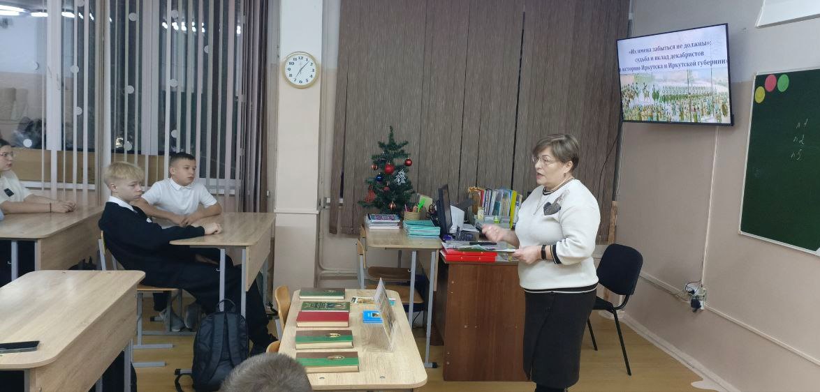 18 декабря специалистом Детской модельной библиотеки на базе МОУ «СОШ №7» был проведен исторический час «Их имена забыться не должны…», посвящённый памяти декабристов и их влиянию на историю Иркутска и Иркутской губернии. Школьники 8-х и 9-х классов погрузились в атмосферу исторических событий начала XIX века, знакомясь с судьбой и вкладом знаменитых участников восстания 1825 года. Мероприятие было посвящено 200-летию восстания декабристов, его основной целью была демонстрация значения участия декабристов в культурных, социальных и образовательных процессах, происходивших в регионе после их высылки в Сибирь.