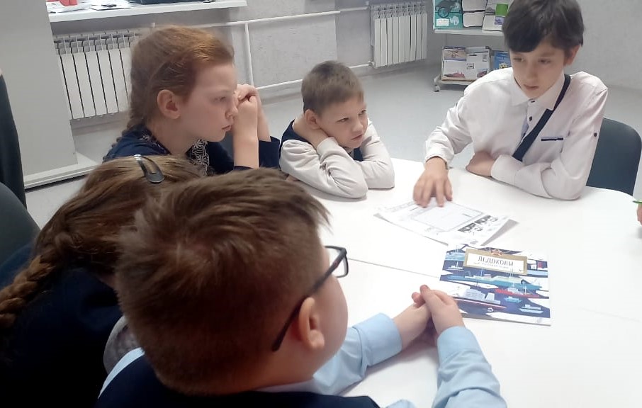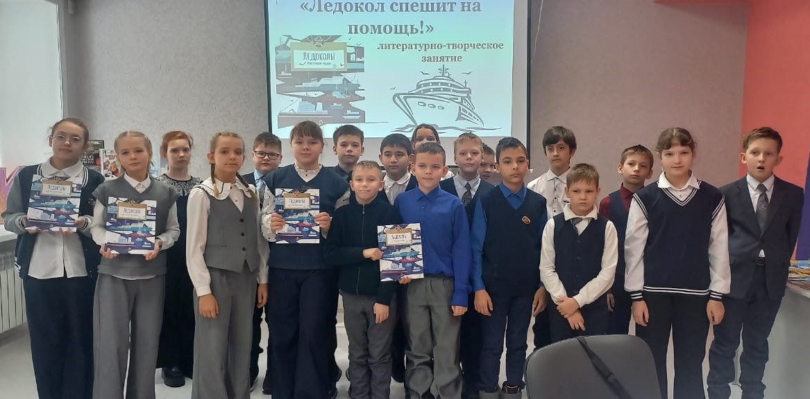 В Детской модельной библиотеке 24 февраля для четвероклассников МОУ «СОШ №4 им Д.М. Перова» прошло литературно-творческое занятие «Ледокол спешит на помощь!». Специалисты детской библиотеки продолжили знакомить юных читателей с книгами издательства «Настя и Никита». Для этого занятия выбрали познавательную книгу Олега Бундура «Ледоколы. Рассекая льды».