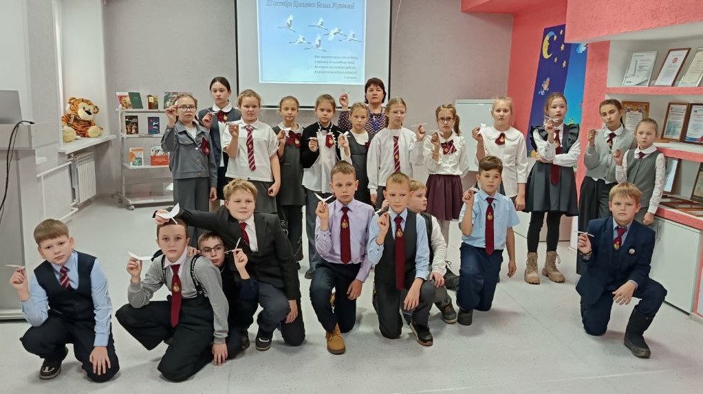 Эти красивые птицы, белые журавли, стали символом памяти, скорби и света.  По всей Росси и прежде всего в Дагестане школы, библиотеки, университеты, клубы писателей и поэтов организуют поэтические встречи и литературные чтения. Детская модельная библиотека города Саянска тоже присоединилась к этой акции.Чтобы отдать дань памяти павшим на полях сражений на творческий час поэзии в детскую библиотеку пришли четвероклассники  Гимназии № 1 им. В.М. Надькина. В начале мероприятия библиотекарь рассказала об истории праздника и его традициях. На Кавказе существует поверье, будто ушедшие от нас люди превращаются в журавлей, поэтому этот праздник — воплощение духовности, поэзии и светлой памяти о павших защитниках Родины.Затем вниманию детей был представлен отрывок фильма о страшной трагедии городов  Хиросима и Нагасаки. 6 августа 1945 года произошло великое несчастье: американцы нанесли по японскому народу мощный удар, воспользовавшись чудовищным оружием – атомной бомбой. Также ребята узнали историю о японской девочке Садако Сасаки, которой  врачи поставили страшный диагноз – лейкемия.И, конечно же,  в День белых журавлей мы преклоняемся перед ратным подвигом солдат нашей Отчизны. Низкий поклон всем, вынесшим на своих плечах тяготы и лишения военного лихолетья, превозмогавшим боль, кровь и смерть. Знаменитые слова стихотворения Расула Гамзатова, стали песней «Журавли», которая после первого исполнения Марком Бернесом эта облетела всю планету. Она полюбилась миллионам – её запели на самых разных языках мира. Она стала песней-реквиемом, песней-молитвой, плачем по всем солдатам, «с кровавых не вернувшимся полей». Неслучайно во многих концертных залах при исполнении этой песни люди встают. И поэтому библиотекарь предложила стоя прослушать эту песню и почтить память не вернувшихся  защитников Отечества с поля боя. На мероприятии звучали стихотворения Константина Симонова, Александра Твардовского, Виктора Верстакова и Юлии Артюховой. Поговорив о стихотворениях, вниманию младших школьников был представлен мультфильм «Солдатская сказка», который был снят в 1983 году по сказке К. Г. Паустовского «Похождения жука-носорога».Также ребята познакомились с городами и населенными пунктами, где стоят памятники  виде журавлей, ведь «Белые журавли» Расула Гамзатова перелетели границы стран и континентов и навеки запечатлены в десятках мемориалов по всему миру — в России, Японии, США, Узбекистане, Израиле.По традиции этот праздник украшают белыми журавлями, поэтому библиотекарь раздала ребятам заготовки для изготовления журавлика. Прослушав пошаговую инструкцию, дети приступили к работе, и у каждого ребенка получился белый журавлик.Боль утраты не отпускает и не утихает с годами. Память о защитниках Отечества передается из поколения в поколение. Будем помнить…