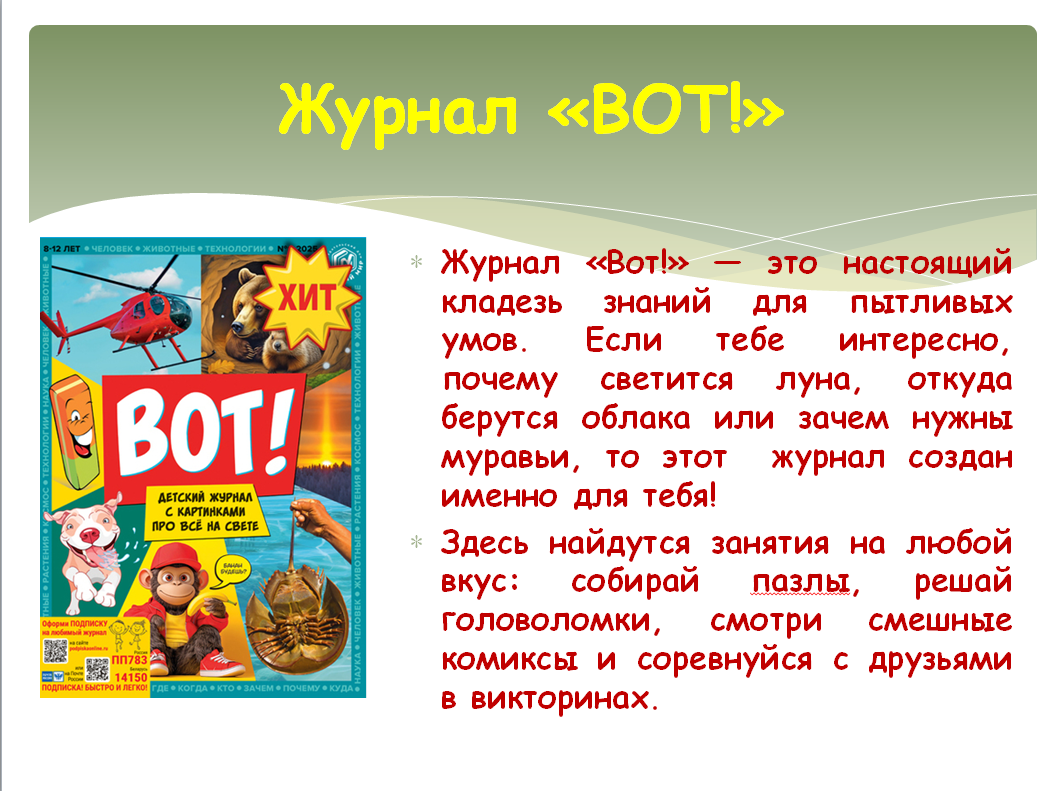 Особенно заинтересовала детей рубрика «Моя Родина Россия» из журнала «Наш Филлипок», раскрывающая богатство русской земли: её уникальные достопримечательности, национальные обычаи и славные страницы истории. Дети узнали об одном из самых высоких памятников в мире — монументе «Родина-мать зовёт!», значимости Сталинградской битвы, ставшей переломным событием в борьбе с фашизмом. Любопытной для ребят стала статья «10 вопросов про наш мозг» из рубрики «Открытие». Школьникам было интересно узнать, что мозг неустанно трудится каждую минуту нашей жизни, обеспечивая работу всего организма. Особое впечатление произвел факт, что изучение нового, чтение и активная умственная деятельность помогают формировать дополнительные нейронные связи, что служит профилактикой возрастного ухудшения памяти и защищает мозг от серьёзных заболеваний, таких как болезнь Альцгеймера.