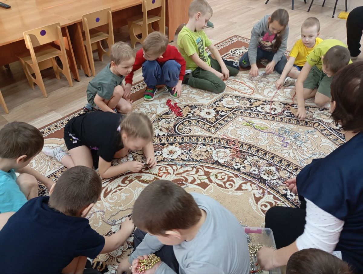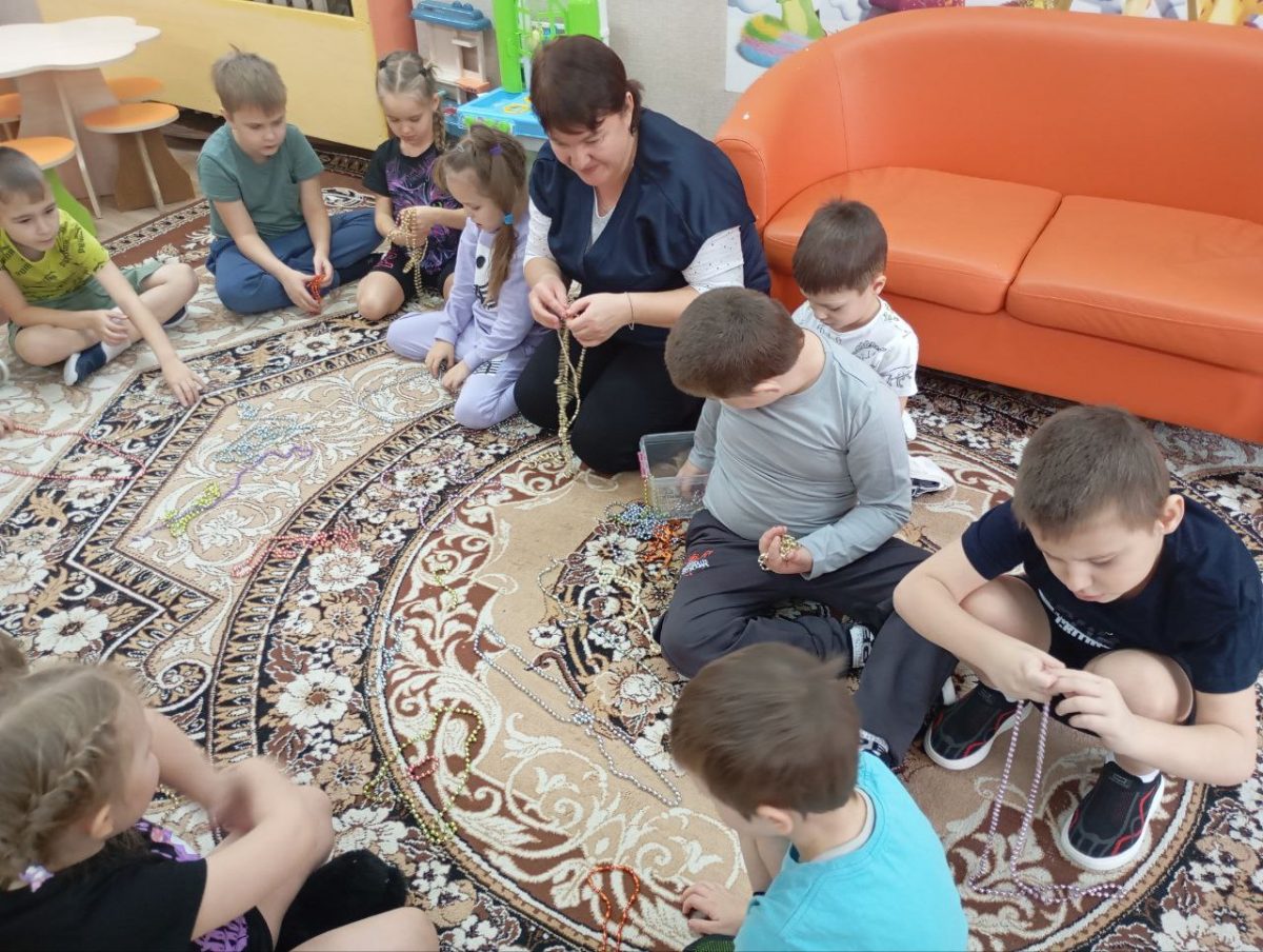 Из ярких бус разных размеров дети с большим удовольствием строили разные фигуры и формы, развивая воображение. Игры с бусами подарили всем без исключения массу положительных эмоций.