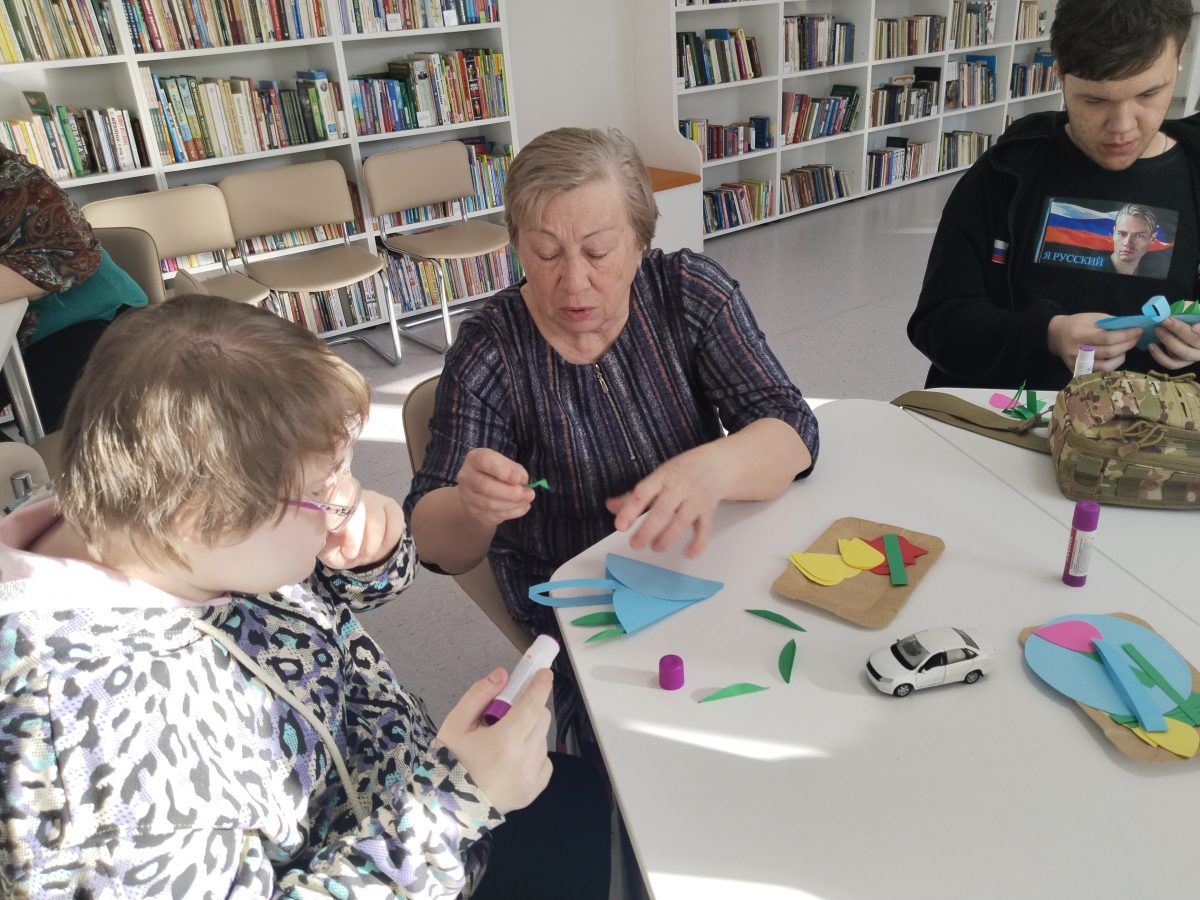 Накануне весеннего праздника Международного женского дня Детская модельная библиотека вновь гостеприимно раскрыла свои двери для особенных гостей — членов общественной организации «Всероссийского общества родителей детей-инвалидов» и участников семейного клуба «Кенгуру». Мастер-класс «Весны чудесные мотивы я милой мамочке дарю!» был наполнен теплом общения, доброй атмосферой и творческим вдохновением.