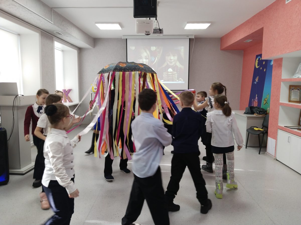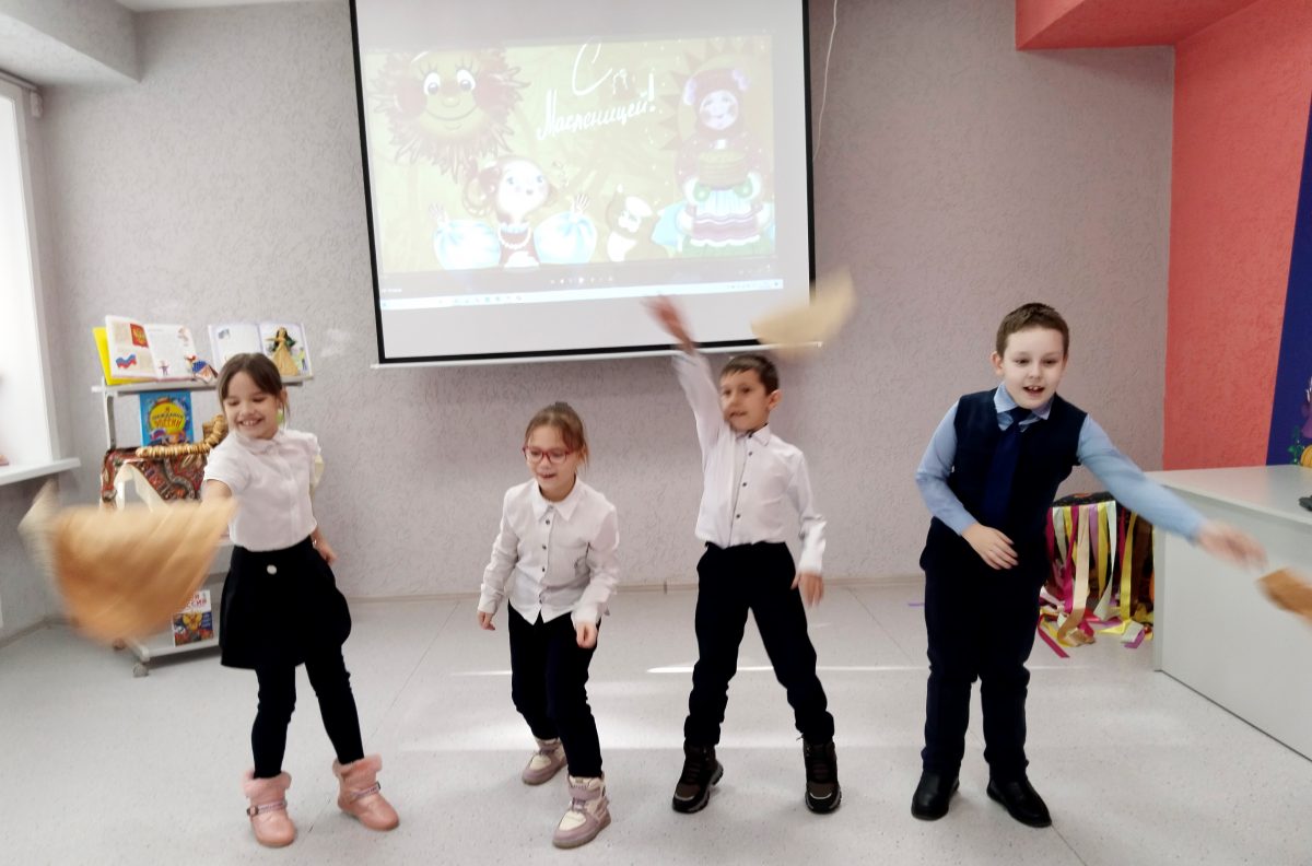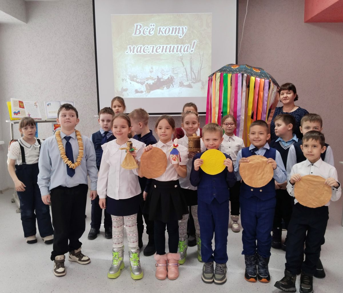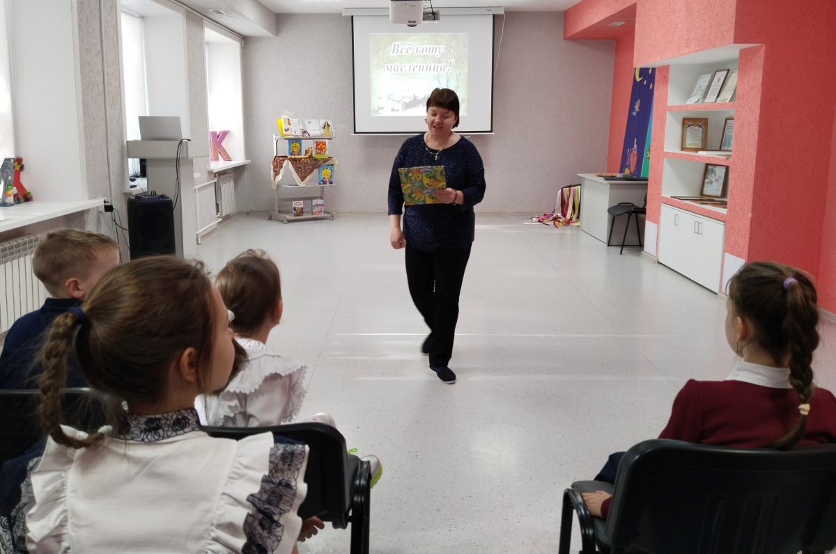 Мероприятие началось с рассказа библиотекаря  об истории праздника и его традициях. Ребята узнали, что Масленица – праздник переходящий и не имеет постоянного числа, но отмечается за семь недель до Пасхи, в последнюю неделю перед Великим постом. Традиции празднования Масленицы уходят корнями вглубь нашей истории. И в былые времена, и сейчас этот праздник отмечается с размахом, с разнообразными развлечениями и, разумеется, с блинами. Многие масленичные традиции сохранились до наших дней. Недаром масленица является одним из самых веселых народных гуляний!Затем библиотекарь предложила сыграть в старинную игру–обряд «Ручеек», которая символизирует таяние снега. Под задорную мелодию так и бежит ручеек вперед и вперед. И вместе с этим бегом приближается весна.После  сыграли в игру-кричалку «Блины-лепешки». Разделившись на команды мальчишек и девчонок,  следуя сигналам библиотекаря, дети поочередно громко и дружно  выкрикивали слова «Блины!» да «Лепешки!», выполняя сопутствующие задания. Наши предки верили, что зиму злую нужно помогать прогонять, а Весну — красавицу закликать! Поэтому, как и положено, на народном гулянии хором все вместе прокричали закличку: «Масленица, Масленица к нам Весна приди!». Праздник  Масленицы длится неделю и каждый день недели имеет свое название, поэтому дети сыграли в игру «Доскажи словечко», запоминая  название дней Масленичной недели и их значения. Продолжая тему мероприятия, библиотекарь рассказала младшим школьникам, почему на масленицу пекут именно блины. А не пироги  или ватрушки. Потому что круглый, румяный и золотистый блин так похож на солнышко. А весны без солнышка не бывает.Продолжились масленичные гуляния словестной игрой «Блины».  Ребята из перечисленных ингредиентов выбирали те, которые нужны для замеса теста на блинчики. А какой праздник без песен, поэтому дети исполнили хором русскую народную песню «Ой блины, блины», наполнив помещение звонким детским смехом и радостью.Продолжая  разговор  о главном угощении масленицы, ребята сыграли в игры «Блинок» и «Метание блинов», проявляя ловкость и сноровку. Так же дети поучаствовали в активных,  популярных  и традиционных забавах на Масленицу.  На развитие координации и командного духа ребята сыграли в игры «Прыжки в мешках»  и  «Карусель» с лентами, символизирующими солнце и проводы зимы.Участники, держась за ленты, бегали вокруг зонта под музыку, меняя темп и направление, создавая яркий вихрь.После  шумных  и подвижных игр библиотекарь предложила  мозговой штурм. Школьники дружно отгадали загадки и вспомнили пословицы  и поговорки.Завершилась встреча просмотром замечательного мультфильма «Ишь  ты, Масленица!».Подобные мероприятия помогают детям ближе познакомиться с богатством народной культуры, способствуют воспитанию уважения к традициям своего народа и прививают любовь к своему Отечеству. Такие праздники дарят радость, яркие впечатления и остаются надолго в памяти каждого ребёнка.