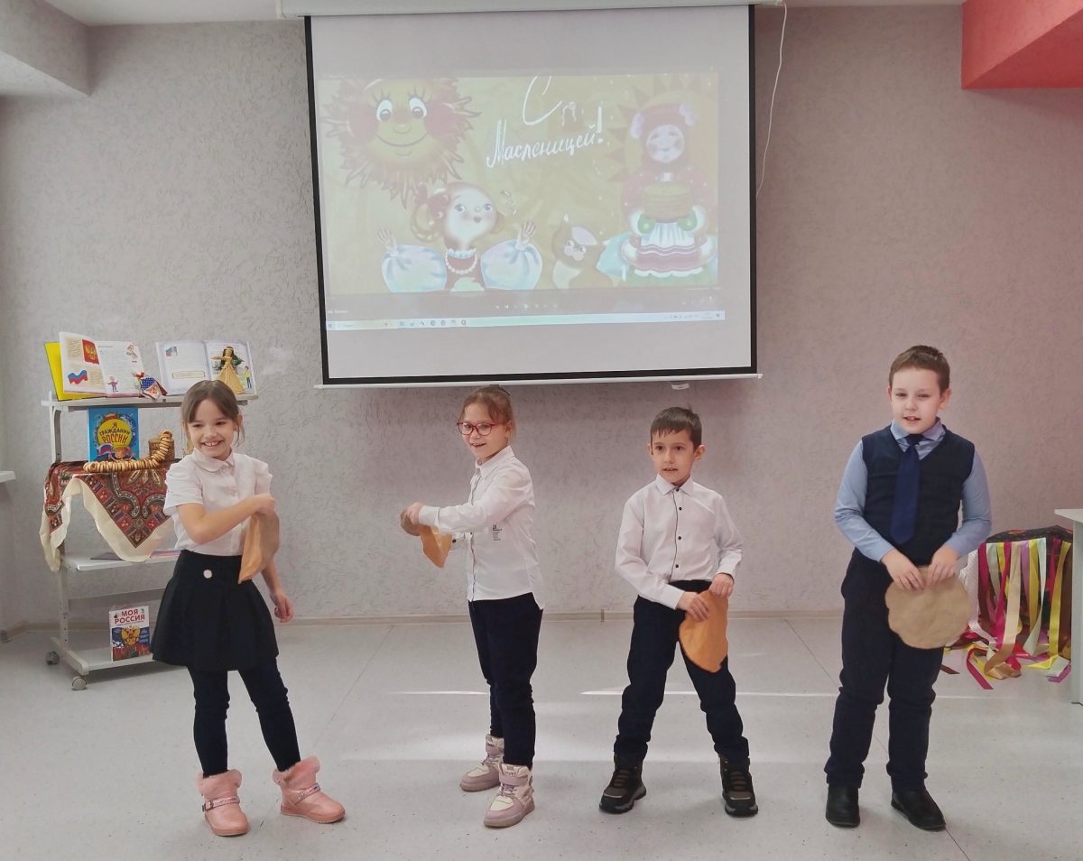 Масленица – один из самых веселых праздников в году, который широко отмечается по всей России. Он отражает вековые традиции, бережно хранимые и передаваемые из поколения в поколение. Это недельный праздник-обряд с хороводами, песнями, плясками, играми, посвященный прощанию с зимой и встрече весны, который  с удовольствием отмечают как дети, так и взрослые. Чтобы окунуться в атмосферу празднования Масленницы, в Детскую модельную библиотеку в дни Масленичной недели пришли школьники 2а класса МОУ СОШ № 6.