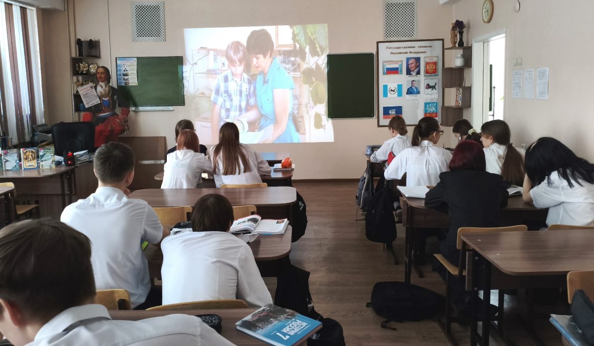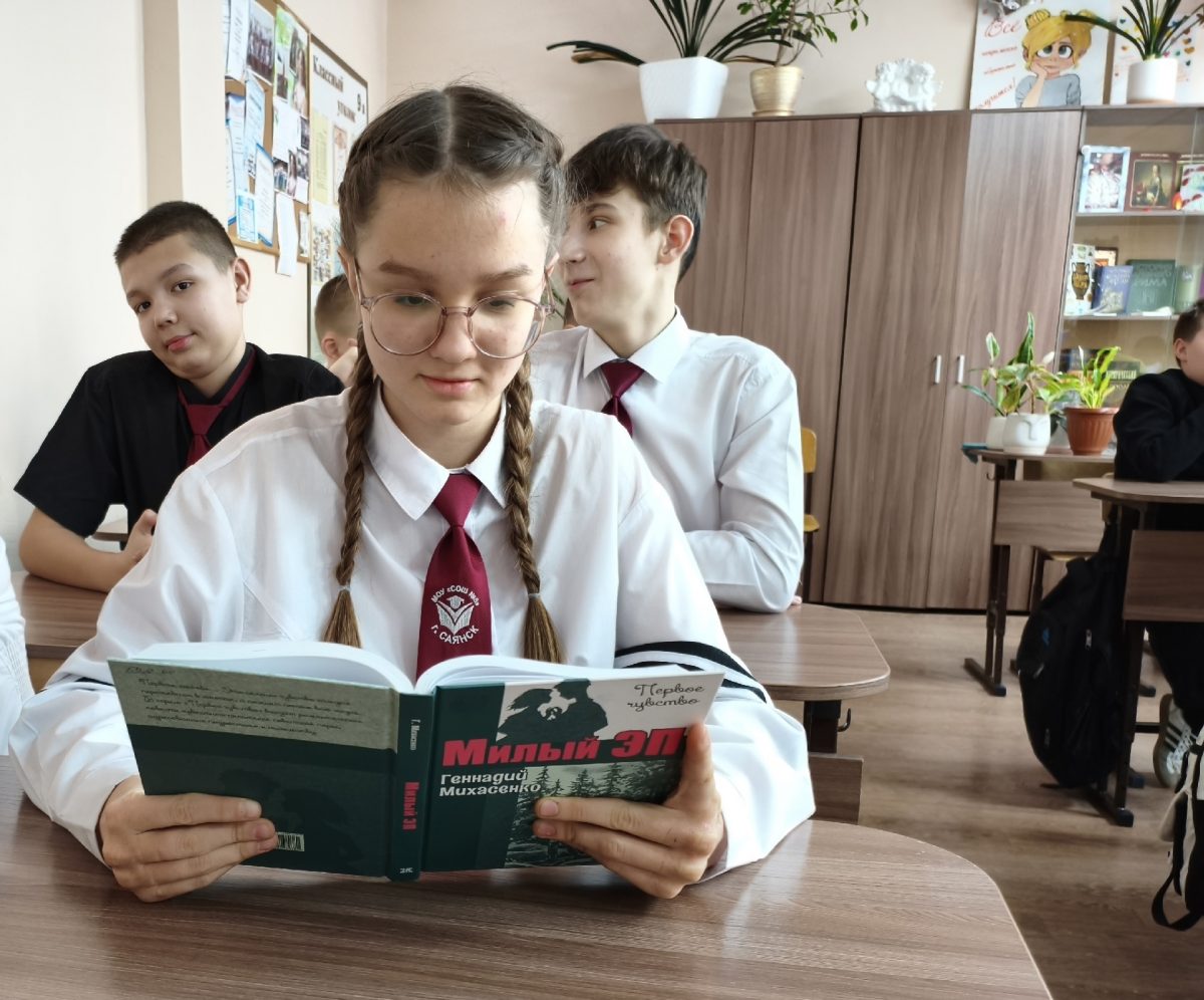 Семиклассниками были прочитаны отрывки из повести «Милый Эп» и сказка «Бессмертный кузнец», а также ребятам показали короткометражный фильм «Пятая четверть» по одноименной повести Геннадия Михасенко.