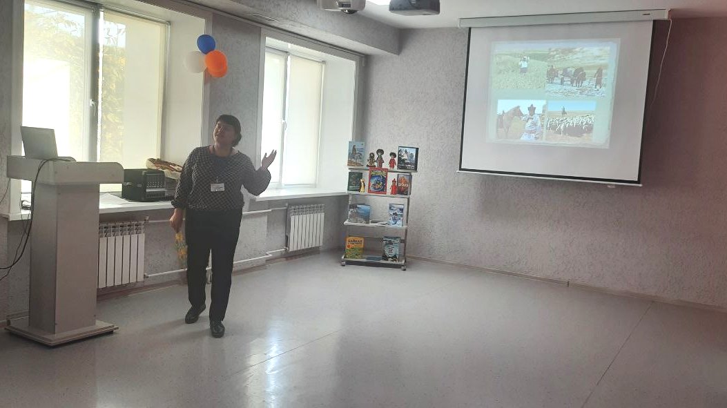 Мероприятие началось с рассказа библиотекаря о дружной и многонациональной Сибири. Затем, поприветствовав гостей встречи еще раз, но уже на бурятском языке «Санбайна!», библиотекарь пригласила всех присутствующих в увлекательное виртуальное путешествие в Бурятию. Путешествие началось с истории образования Бурятии и посещения ее столицы — города Улан-Удэ, в котором уже очень давно в мире и согласии живут вместе буряты и русские. Познакомились ребята с флагом и гербом Бурятии, узнали, что означают символика Республики и послушали ее гимн.